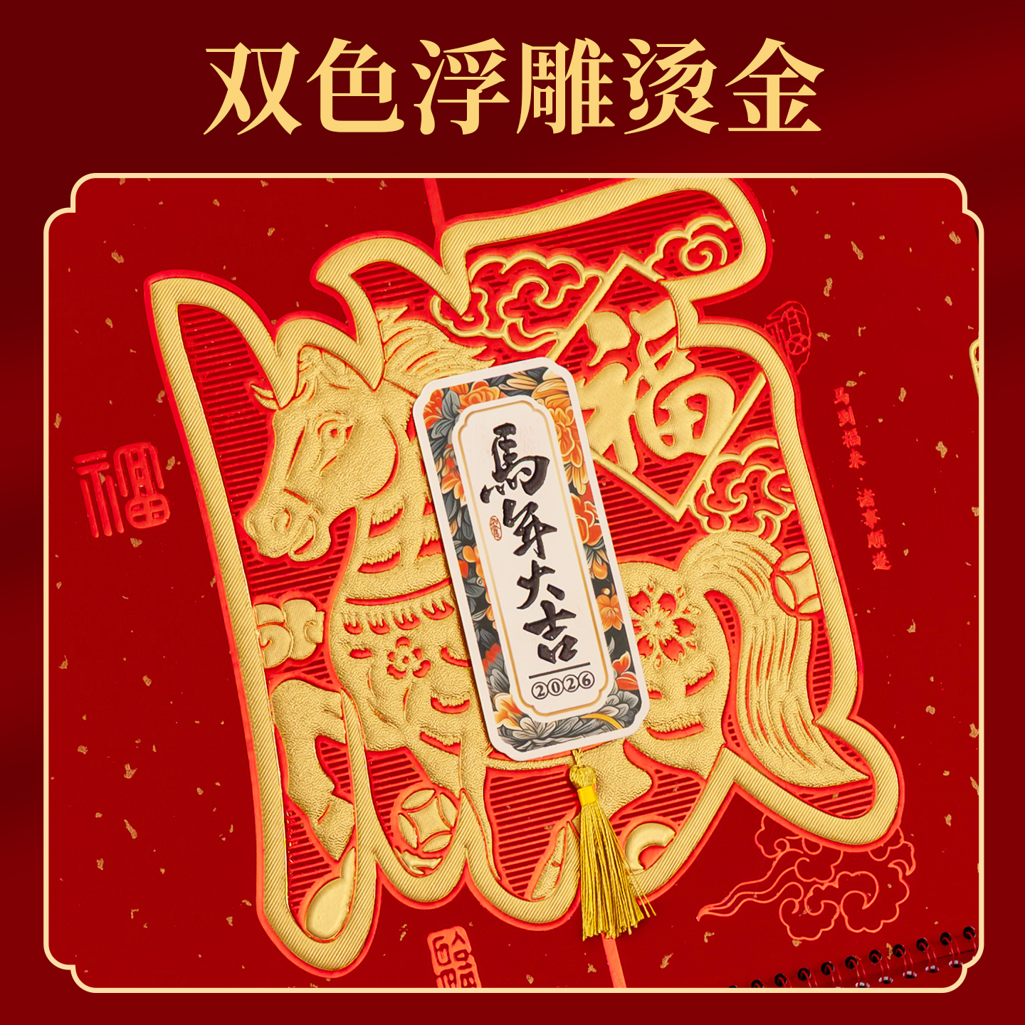 高档挂历定制2026年新款福字日历公司台历吊牌加大加厚企业高端日历周历月历来图订制定做家用挂墙式马年广告