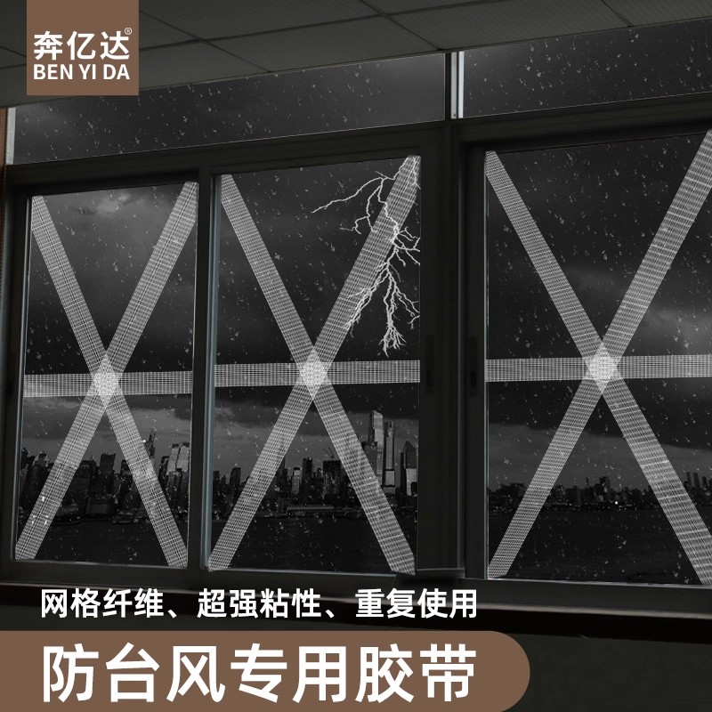 台风贴窗胶带阳台门窗加固密封专用神器窗户米字保护防水防爆挡风漏风抗拉不留胶无痕高粘度强力单面纤维胶布