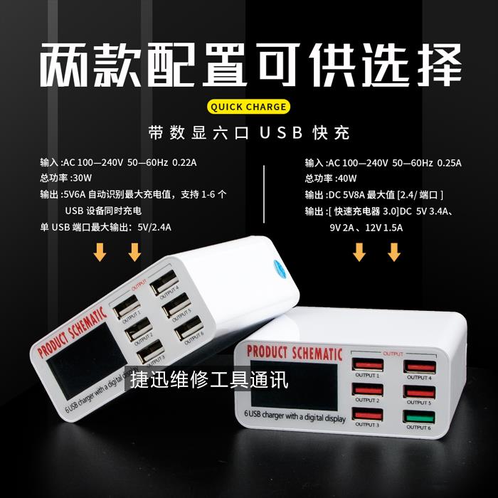 多口6口usb充电器 LCD显示电流 手机快充闪充 手游工作室维修充电