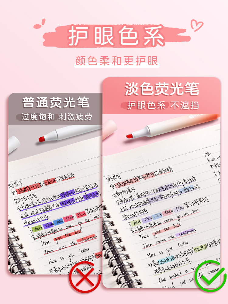 三年二班护眼荧光笔高颜值荧光标记笔学生用多色记号笔彩色划重点手帐手账笔做笔记本马卡龙淡色萤光笔银光笔
