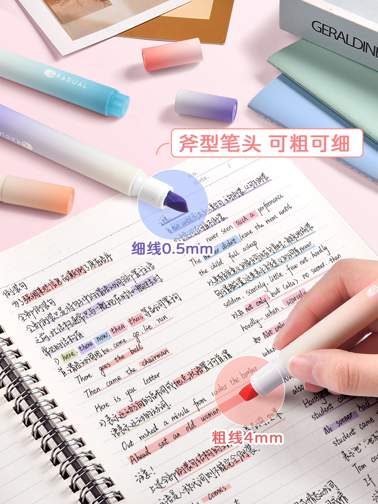 棱镜渐变色!柯林荧光笔标记笔彩色划重点小学生用记号笔初中生专用读书笔记高颜值文具手帐银光莹光笔萤光笔