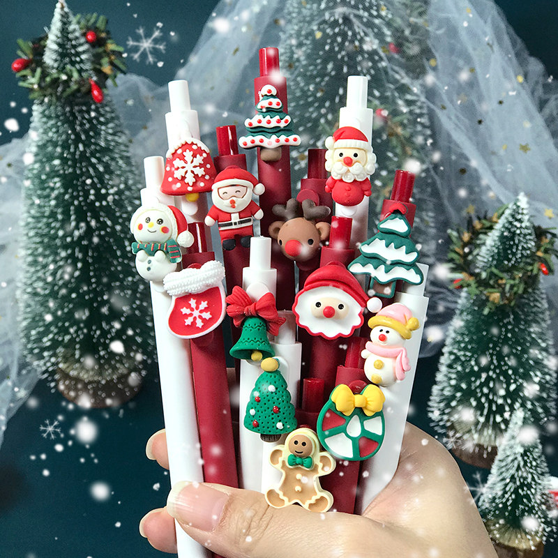 圣诞笔按动中性笔ins日系红笔老师专用笔学生用可爱超萌女生款高颜值按压碳素黑色水性签字笔蓝黑圣诞节文具
