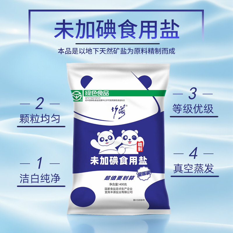 竹海未加碘食用盐400g家用盐巴精制盐深井0添加抗结剂井盐无碘