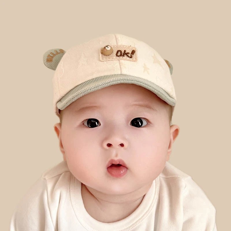 宝宝鸭舌帽子秋冬季韩版薄男女童可爱小熊防晒灯芯绒婴儿春秋软檐