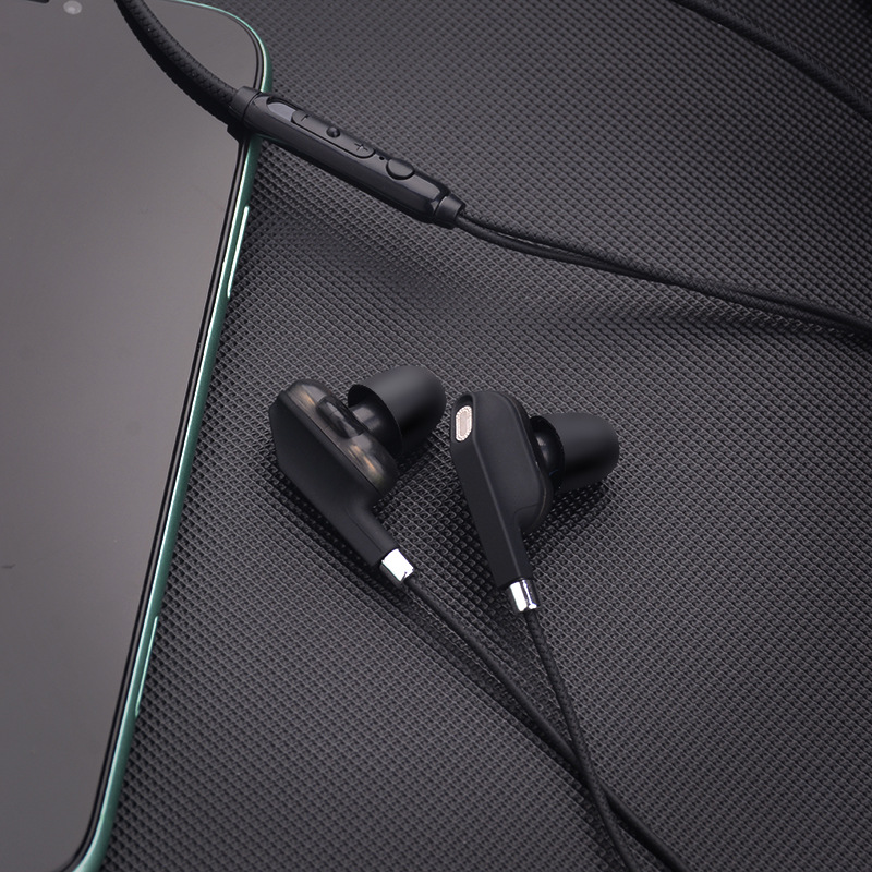 力拓A06入耳式重低音耳塞3.5mm双动圈线控通话带麦耳机工厂直销