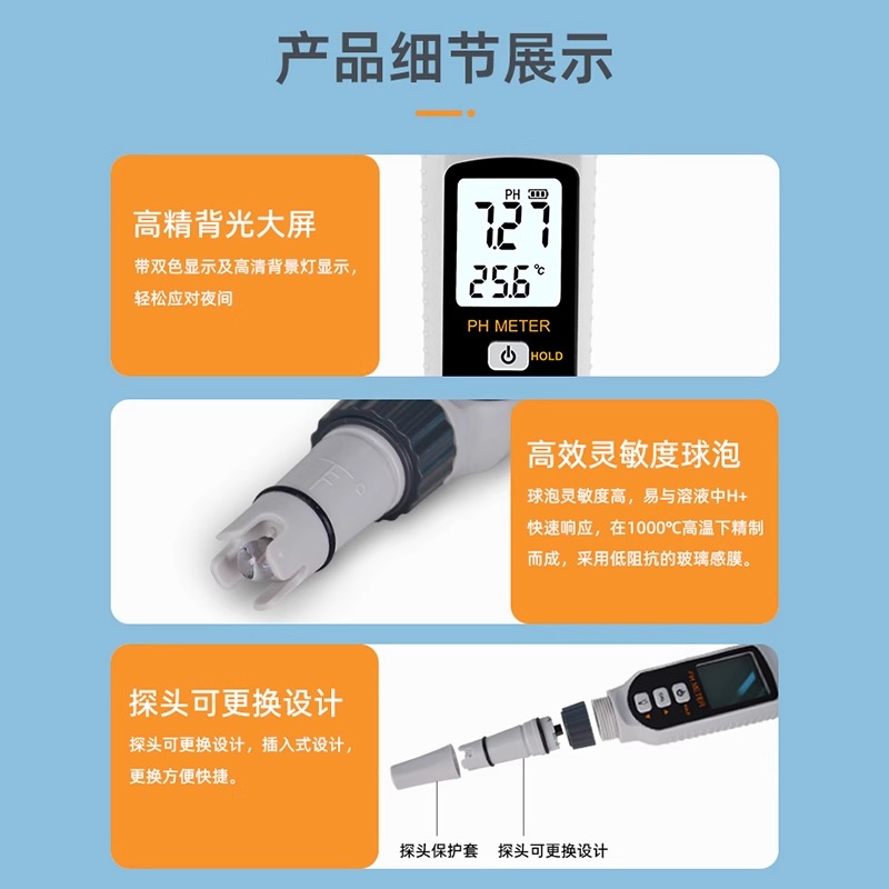 PH测试笔便携式酸碱度测试仪高精度工业pH计鱼缸水族pH检测器
