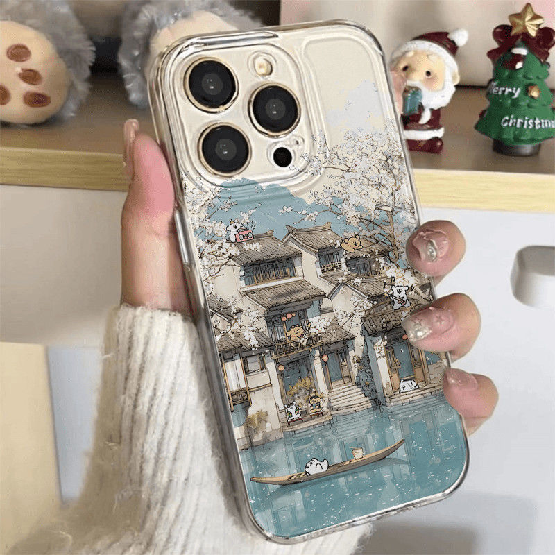 线条小狗适用苹果16手机壳iPhone15ProMax风景16e新款14Pro防摔13个性12保护套11唯美78Plus女XS全包6s软壳