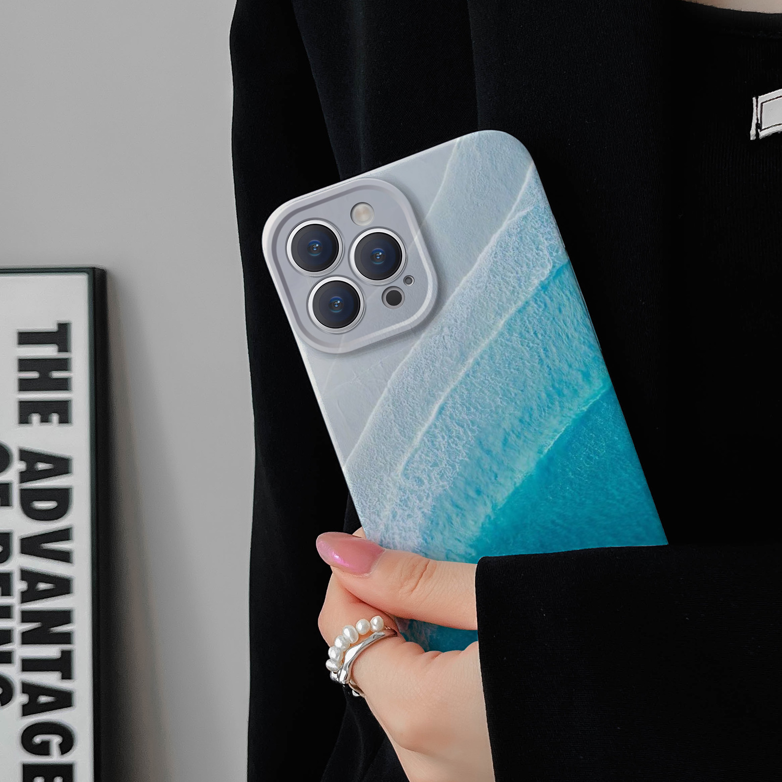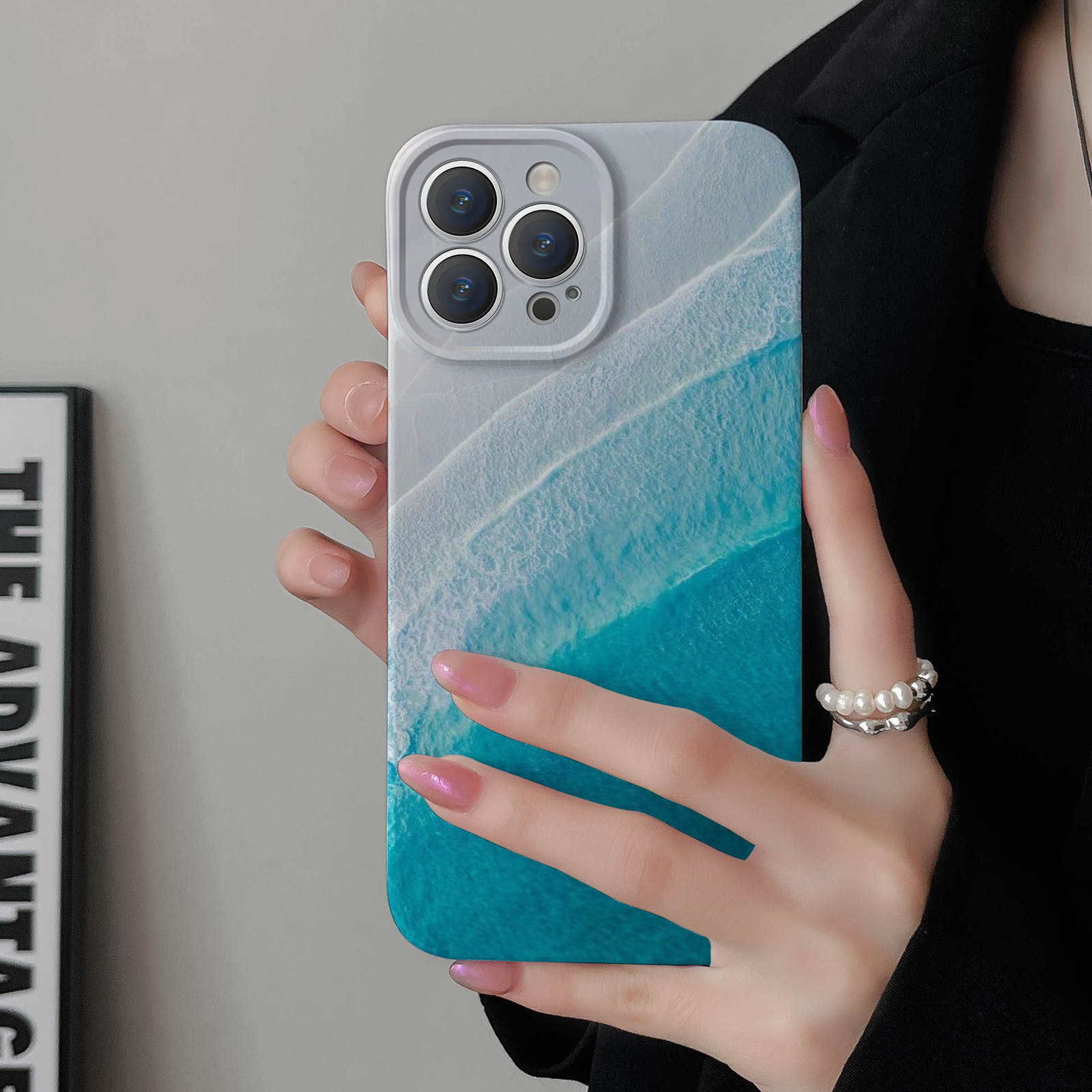 适用华为oppo苹果iqoo荣耀iphone17 16promax/15pro/14/13/12/mate70 60新款情侣手机壳plus沙滩蓝色大海风景