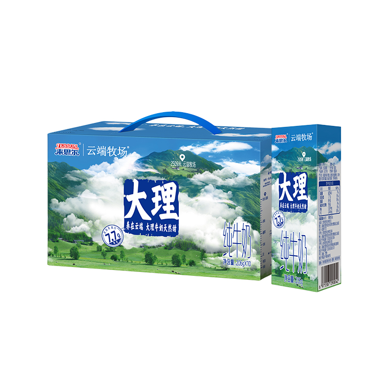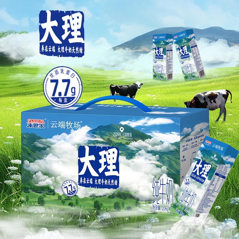 来思尔云南大理云端牧场纯牛奶206g*10盒整箱营养早晚餐乳品