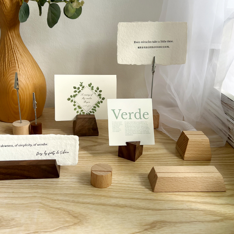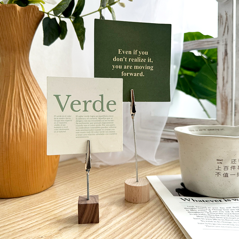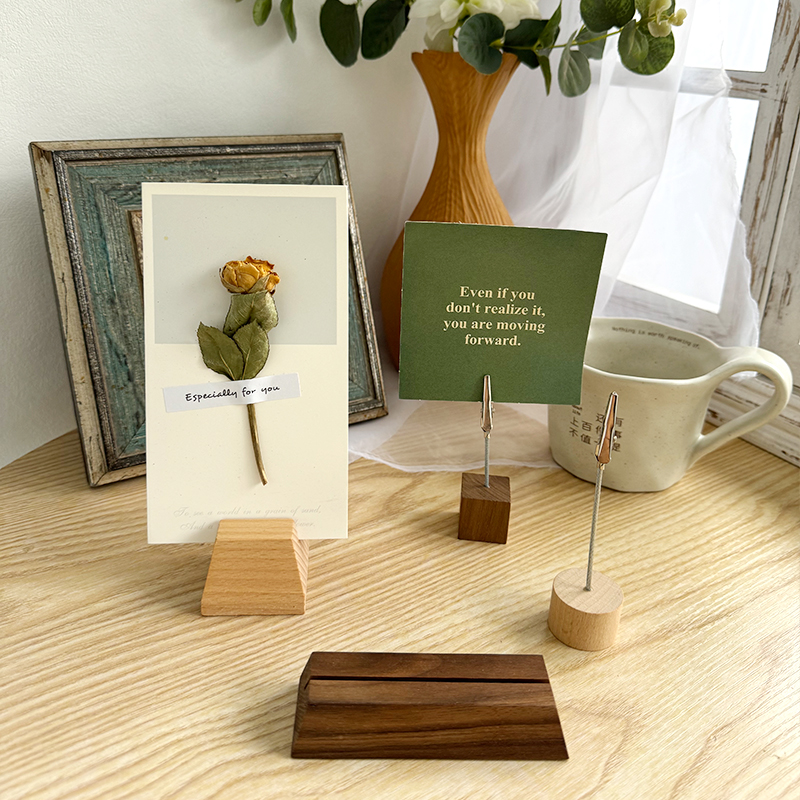 实木质便签夹子标签展示牌照片夹底座留言支架桌面立牌卡片摆件立式架座创意ins榉木黑胡桃酒店原木办公手工