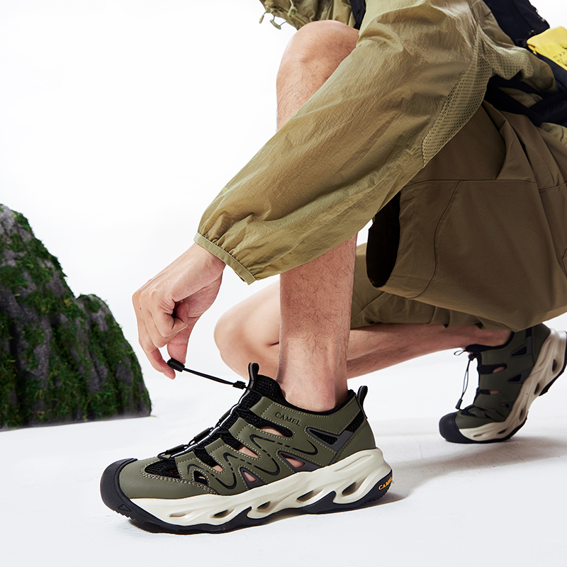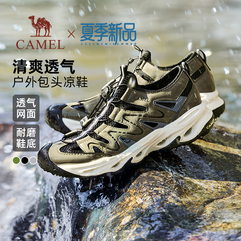 骆驼男鞋2025春夏新款户外沙滩镂空透气包头溯溪涉水运动休闲凉鞋
