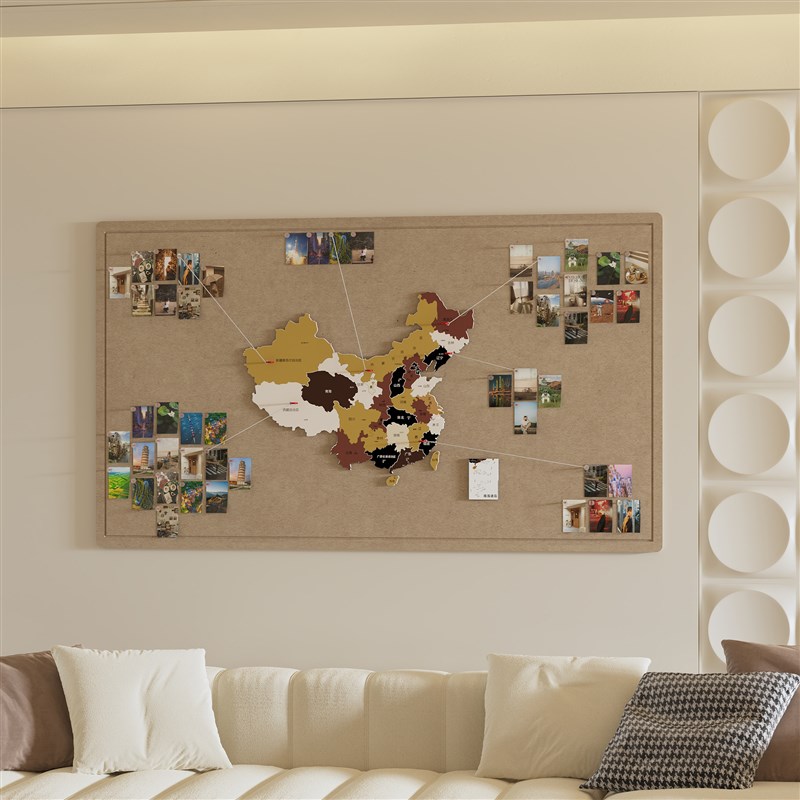 中国毛毡地图旅行照片墙旅游足迹打卡标记墙贴客厅墙面装饰画挂画