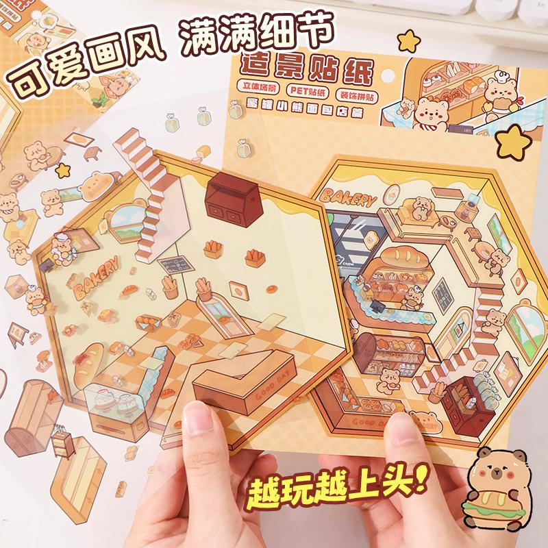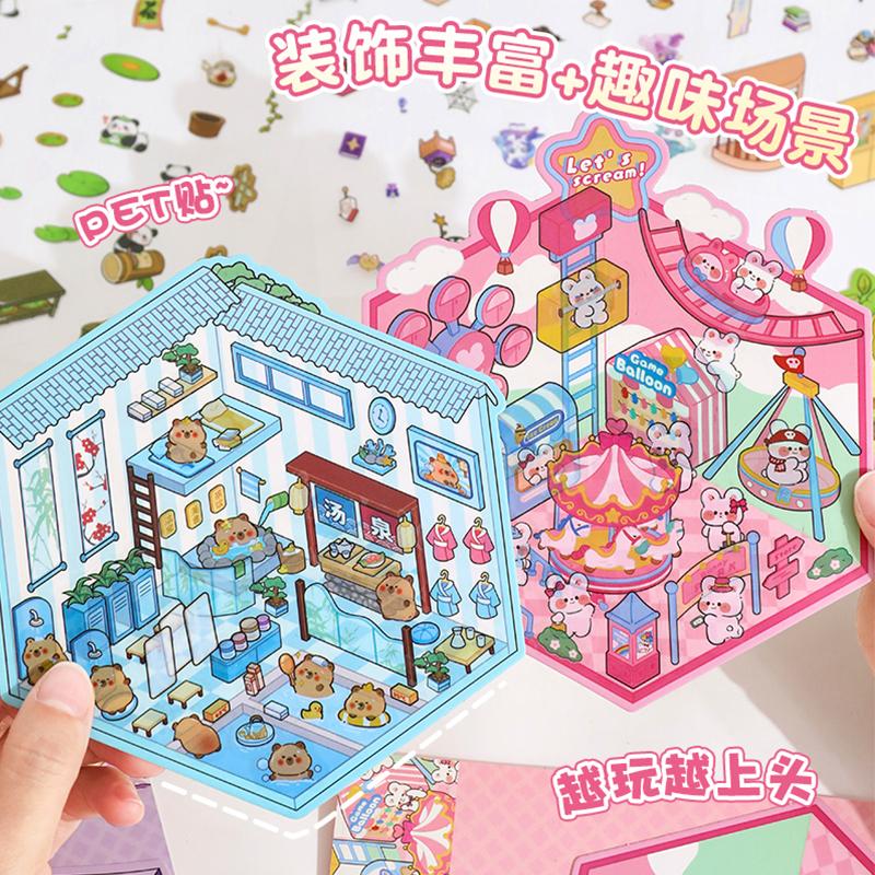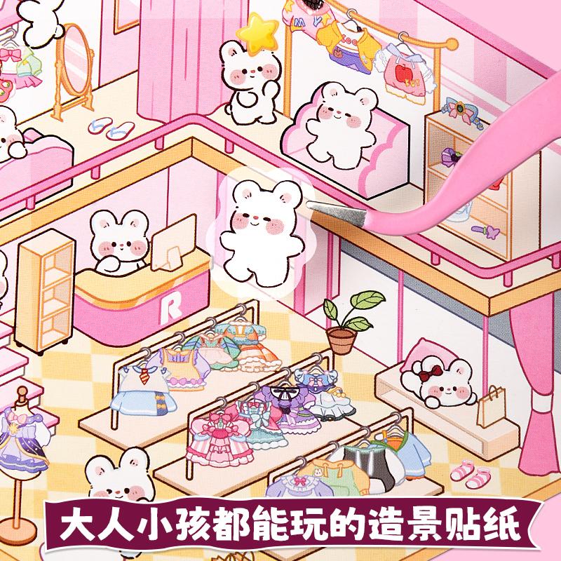 送镊子)造景贴纸微缩场景合集本贴纸本立体换装贴纸女孩儿童diy防水贴画亲子小游戏解压小屋玩具装饰小图案