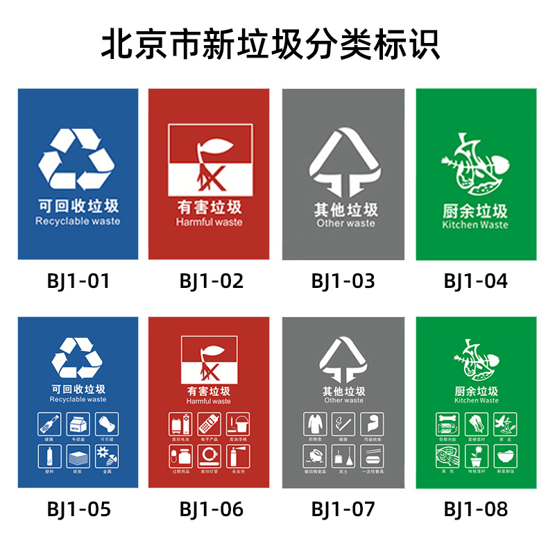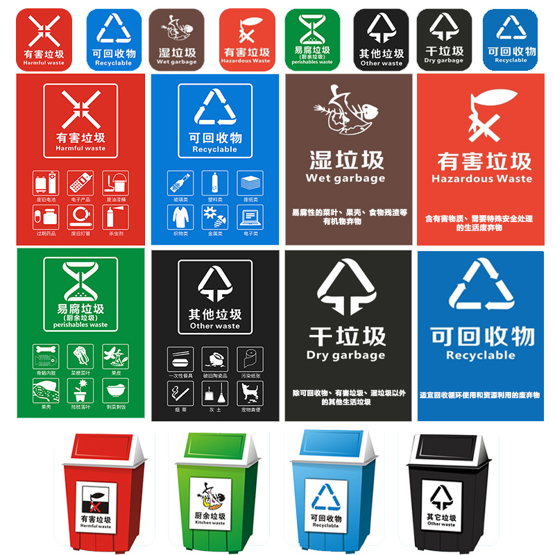 垃圾分类标识垃圾桶贴纸可不可回收有害厨余其他垃圾分类宣传栏家用上海市杭州市北京市广州市江苏省南京墙贴