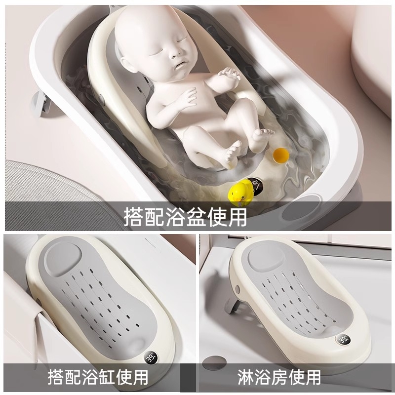 IUU婴儿洗澡浴架坐躺托感温宝宝浴盆浴床托防滑垫新生儿浴网折叠