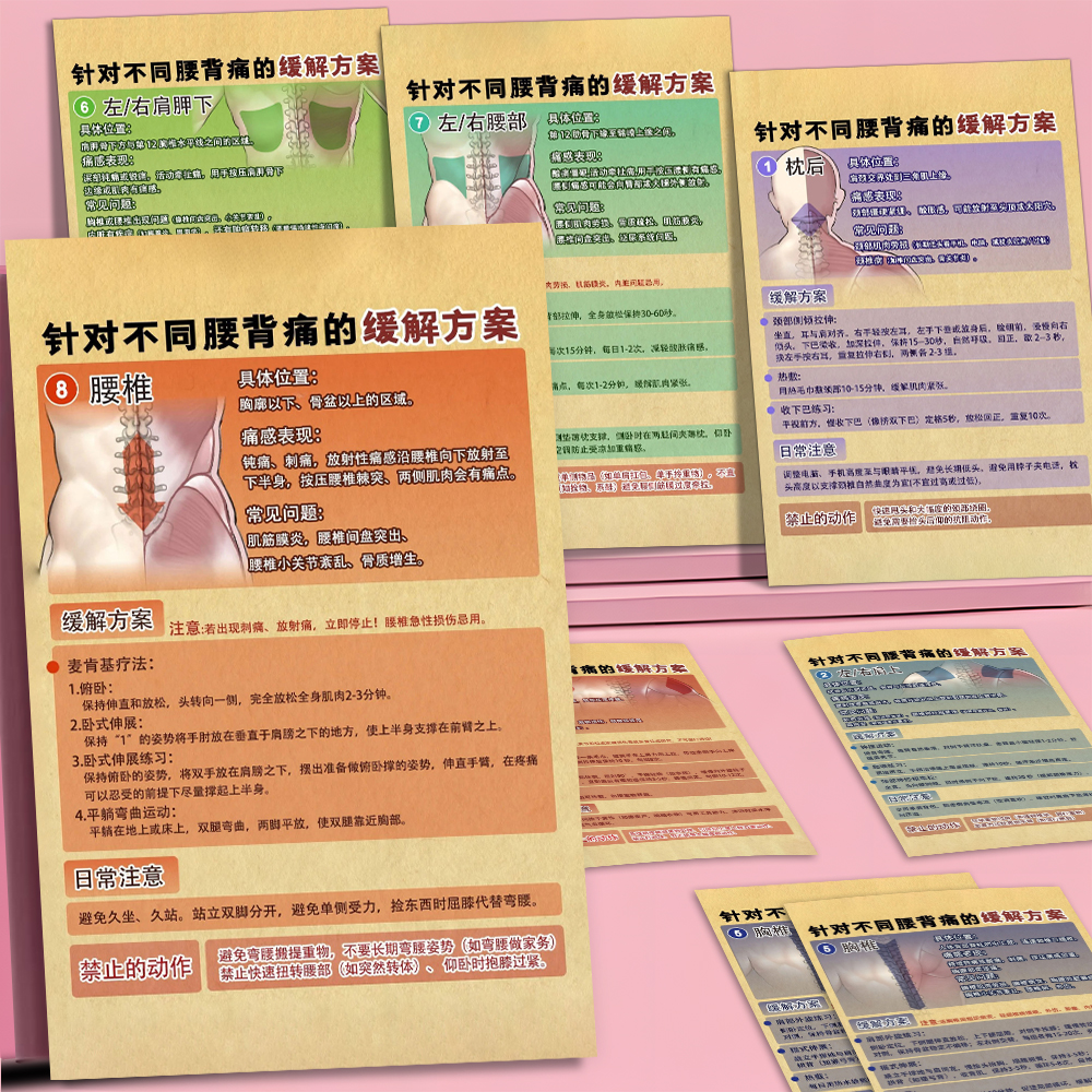 针对不同腰背痛缓解方案】缓解身体疲劳改善疼痛身体调理干货贴画