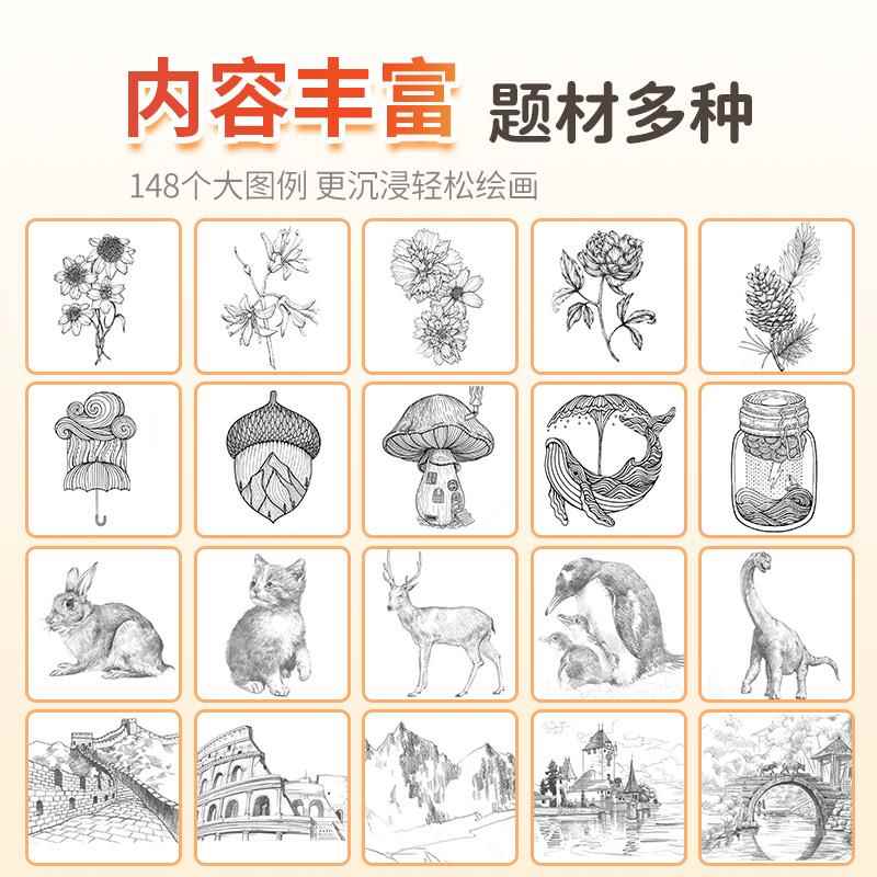 速发创意静物动物花卉风景线稿描摹本 套装植物入门漫画技法画画