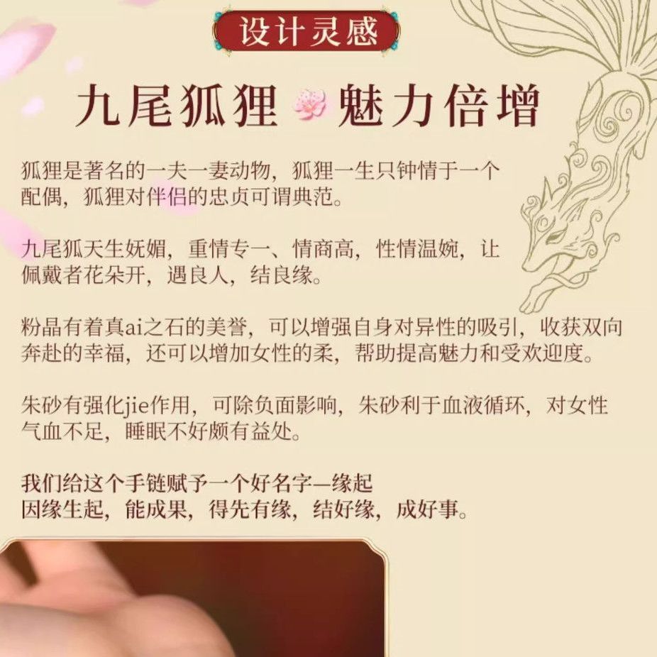 泛洛轻缘起粉晶手链天然女红旺夫九尾狐手串紫金砂女招桃花送女友