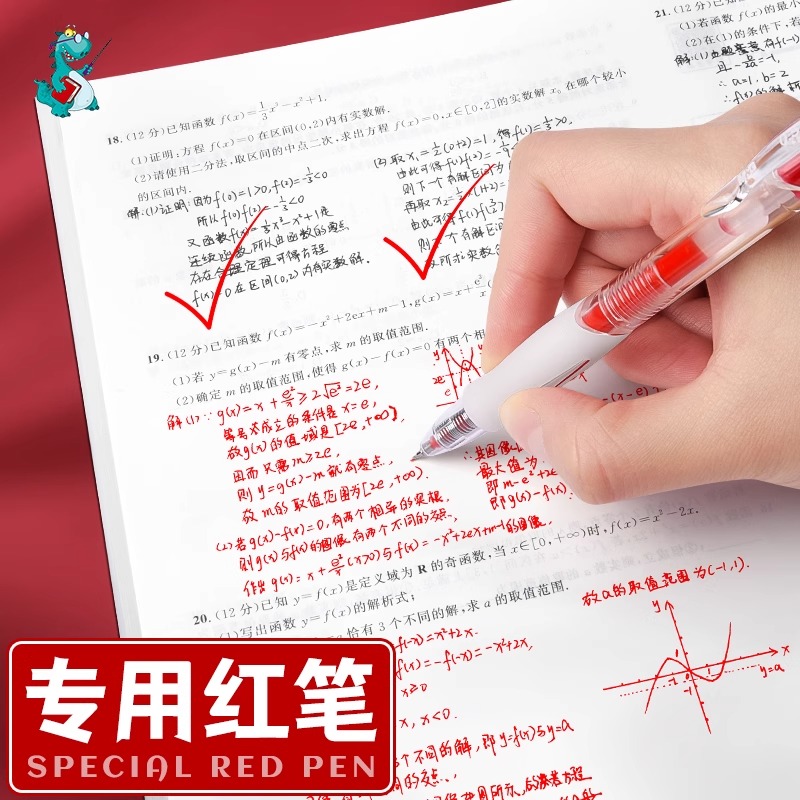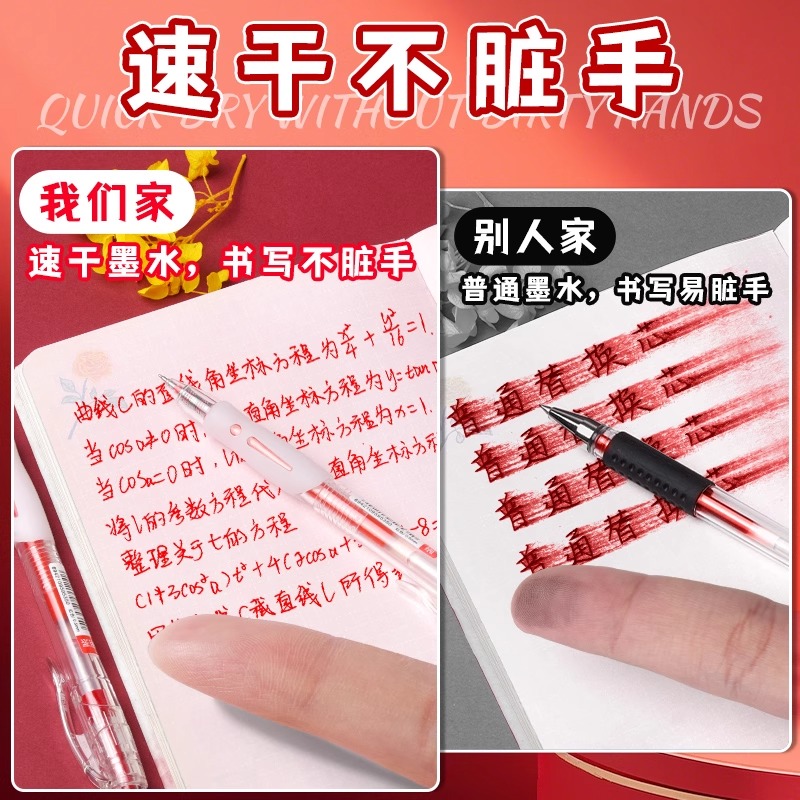 三年二班×点石红笔速干学生用红色中性笔老师专用粗头批改作业高颜值柔绘笔直液式刷题笔圆珠笔勃艮第红水笔