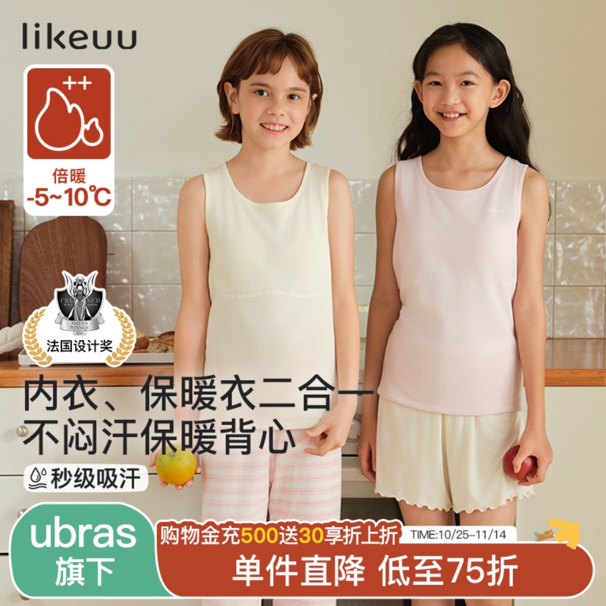 likeuu儿童保暖背心男女童护肚吊带打底内穿青少年发育期内衣a类
