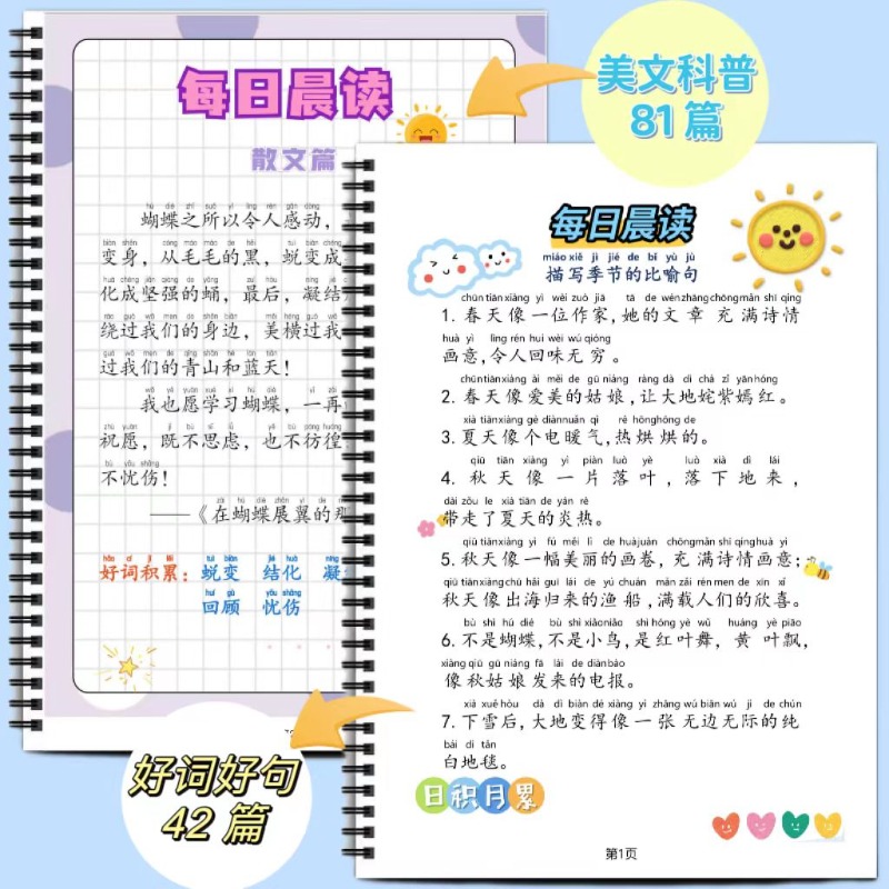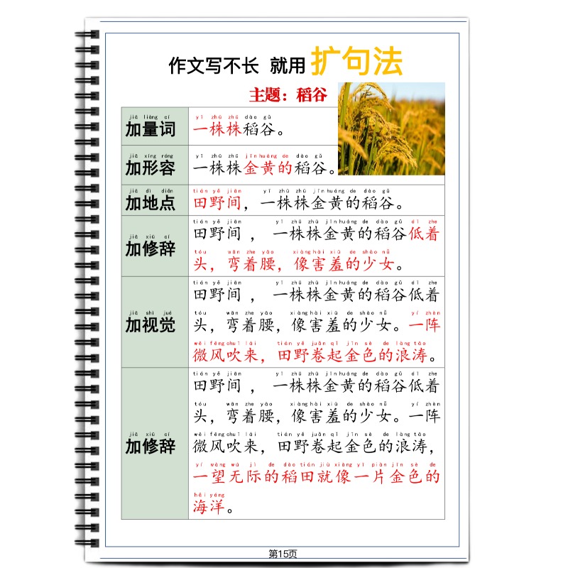 每日晨读之扩句法写作文练习提升五感法好词好句美文科普看图写话小学语文一二三年级作文素材扩句扩词