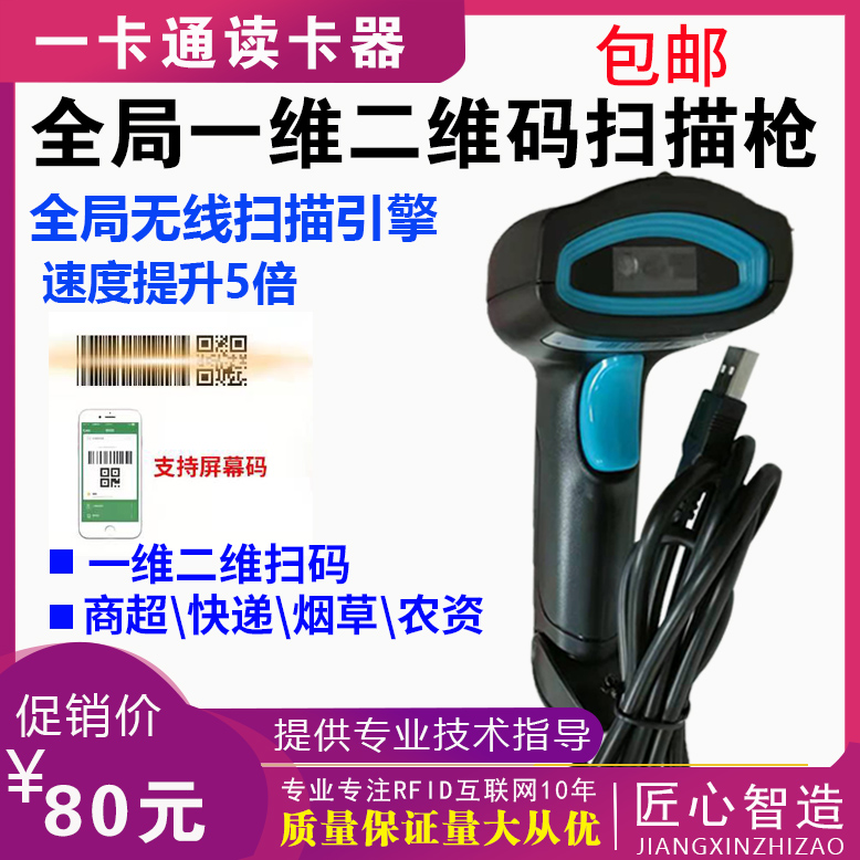 无线扫码枪超市收银二维码红光扫描枪支付宝条码快递物流一维码通