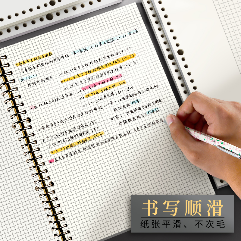 上翻活页笔记本可拆卸方格本网格本子高颜值初中生专用高中格子小方格方形本复古考研加厚2025新款文具草稿纸