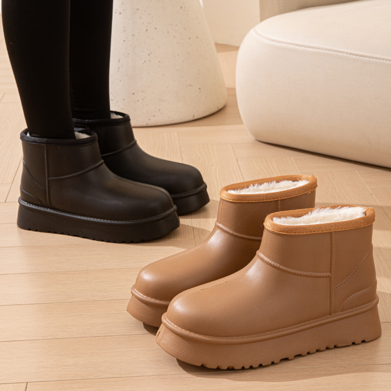 松糕厚底雪地靴增高保暖加绒棉鞋冬家居女棉拖鞋包头拖平底一脚蹬