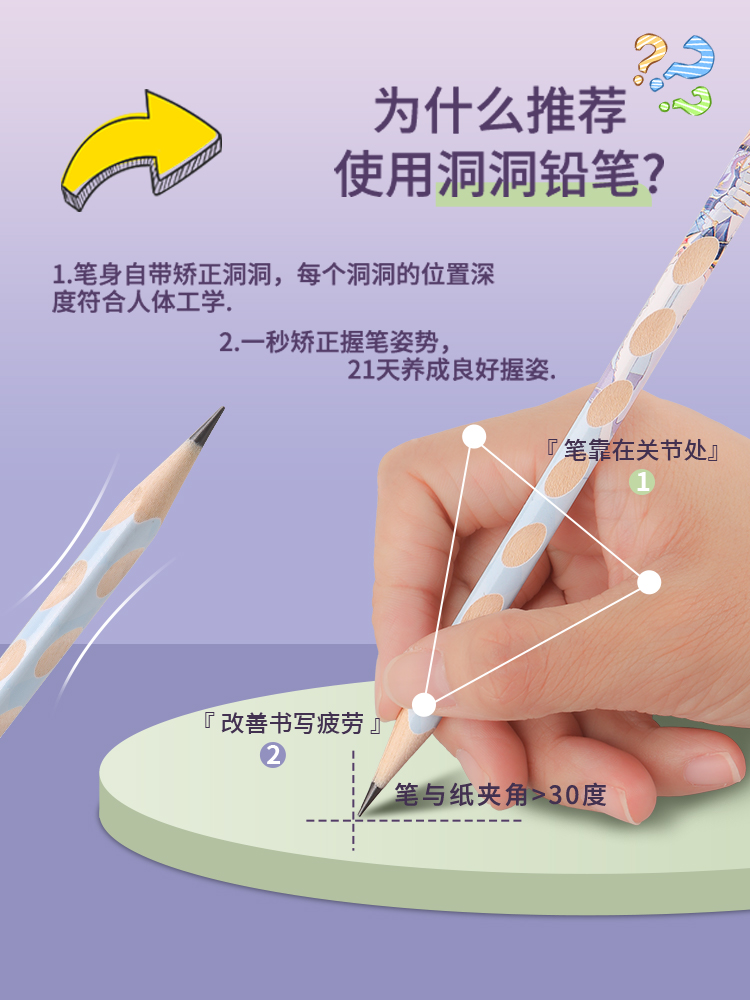 晨光文具洞洞铅笔小学生用HB铅笔矫正握姿三角杆2B一二年级练字