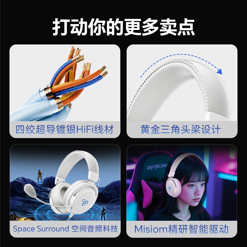 觅声白羊座电竞HiFi有线头戴游戏耳机虚拟7.1fps听声辨位带麦耳机
