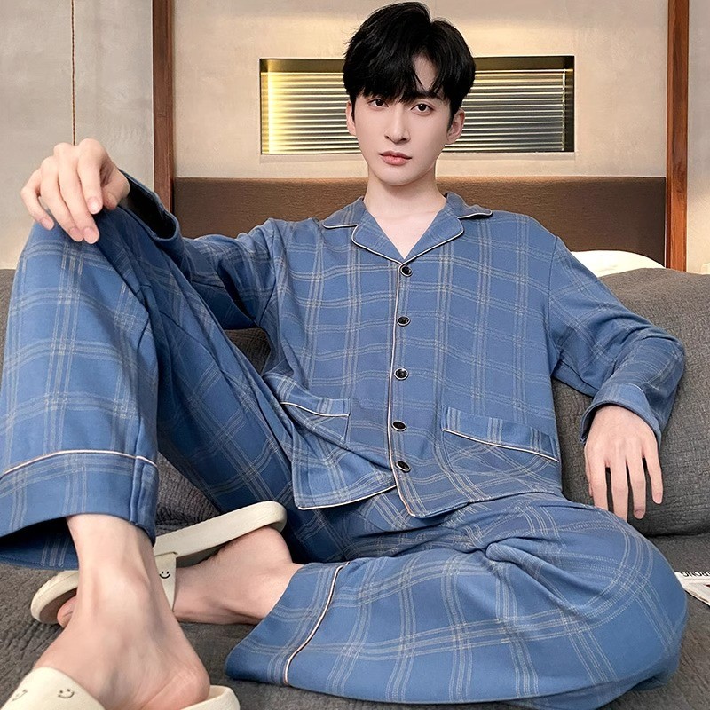 睡衣男士春秋款长袖2025年新款开衫薄款格子大码可外穿家居服套装