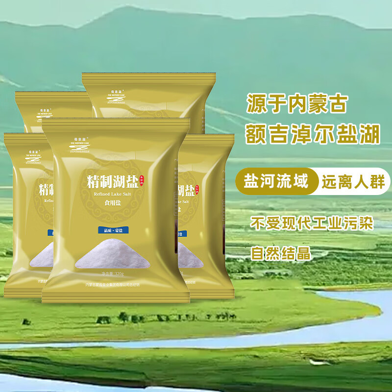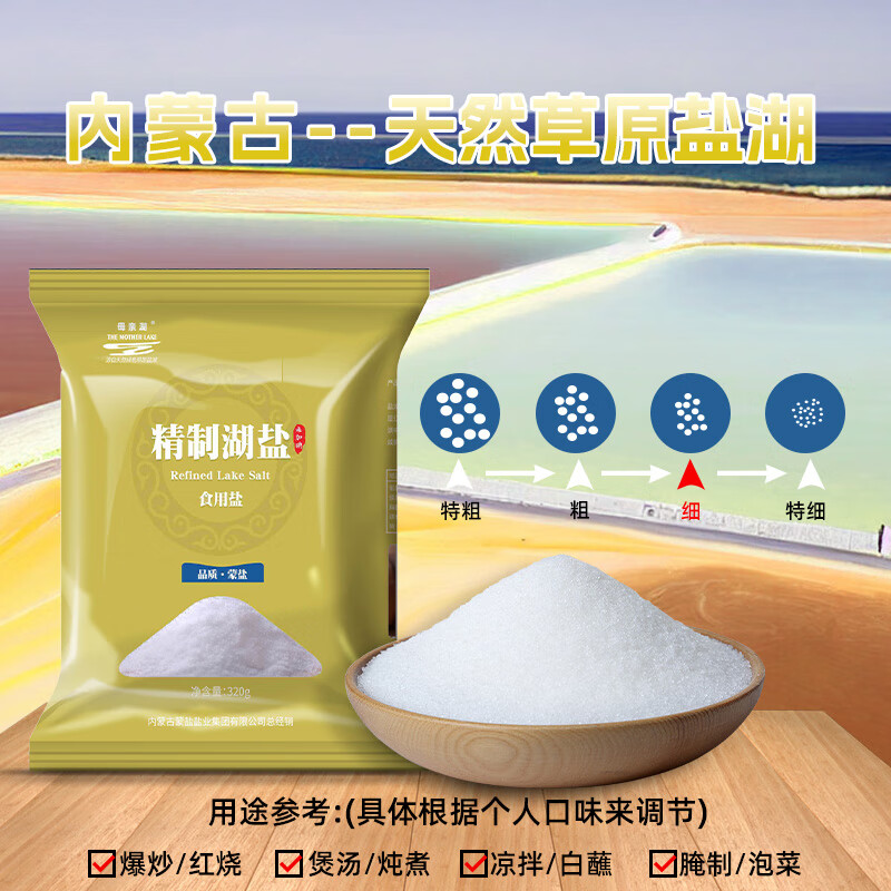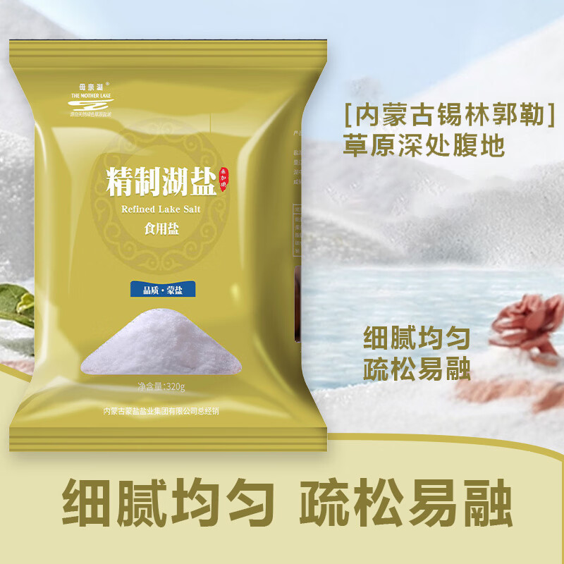 母亲湖食用盐320g天然草原雪晶湖盐0添加家用健康低钠调味无碘盐