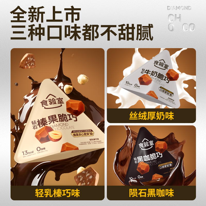 食验室钻石脆脆巧冻干巧克力牛奶纯可可脂休闲健身黑巧小零食