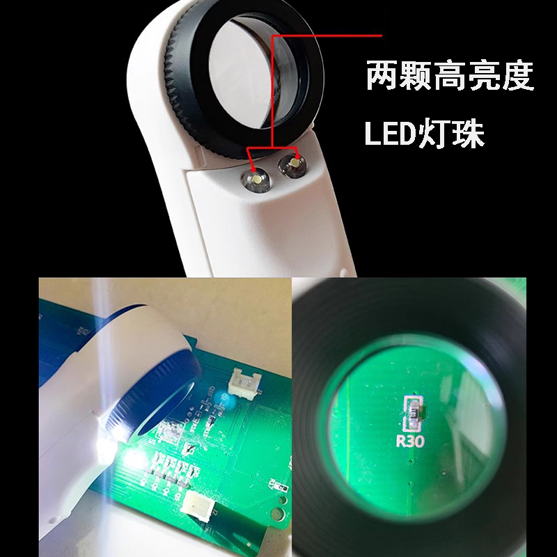 湘奕高清正品40倍维修用高清鉴定电子维修LED带灯珠宝钻石玉钱币邮票字画银元高倍1000光学扩大镜便携学生