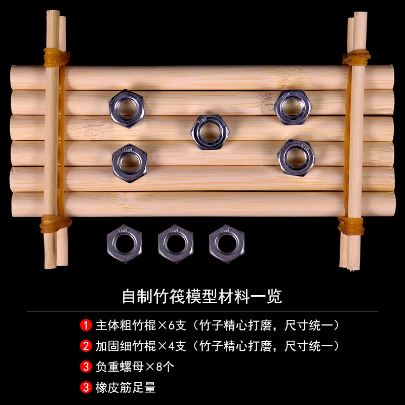 独木舟模型自制竹筏木筏制作材料配螺母五年级下册科教版科学小船手工小制作木头船的历史用浮的材料造船实验