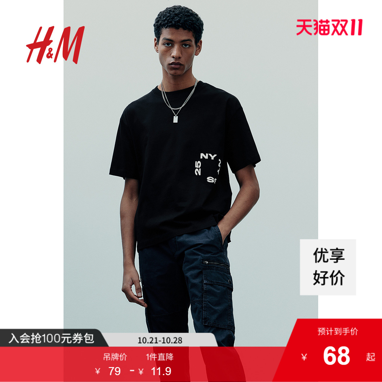 HM男装女装T恤2025秋季新款印花中等克重落肩宽松短袖上衣1227157