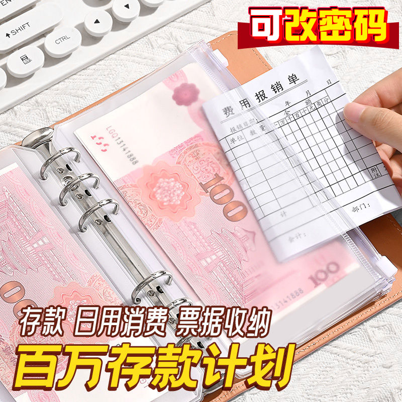 现金存钱本带密码锁现金收纳袋大容量2025新款5万网红理财防水暴富收藏册10万元存钱夹钱册儿童成人存钱袋