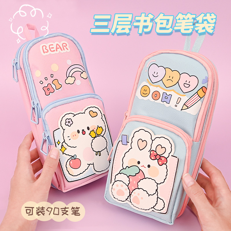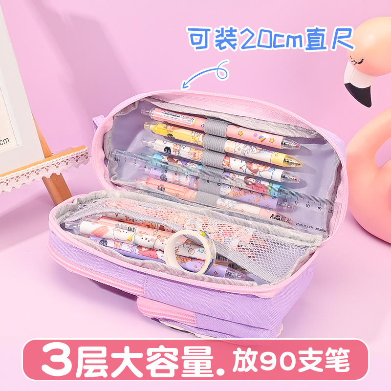 速发小学生大容量笔袋初中生用粉色文具盒少心可爱笔盒孩款四年级