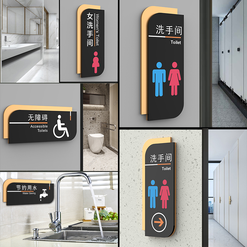 男女洗手间门牌卫生间标识牌公共厕所WC温馨提示牌禁止吸烟小心地滑警示标语墙贴创意左右方向指引牌导向牌子