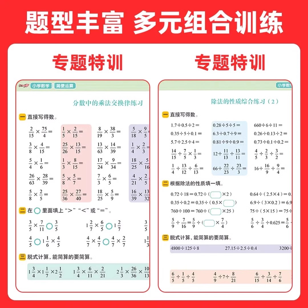 四年级下册数学简便运算小学四下专项强化训练上册每日一练人教版乘法分配律练习册竖式脱式加yt减乘除混合四则运算口算题卡计算