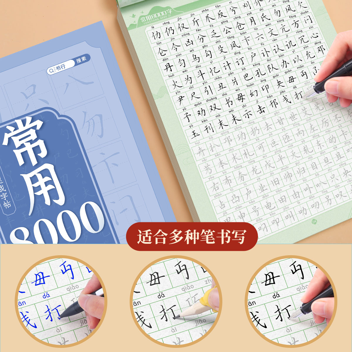 8000字楷书临摹字帖成人大人硬笔书法男女生钢笔练字本初中高中生楷体每日一练字体大气漂亮临慕炼练习贴初学者笔画速成成年常用