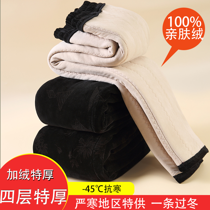 中老年人裤子秋冬加绒加厚妈妈保暖棉裤奶奶亲肤时尚外穿长裤女款