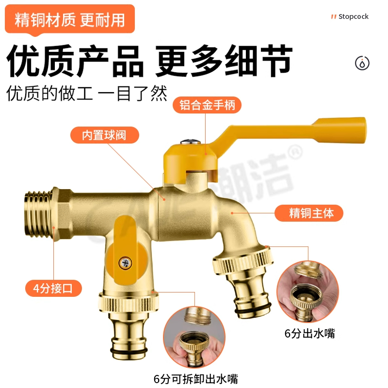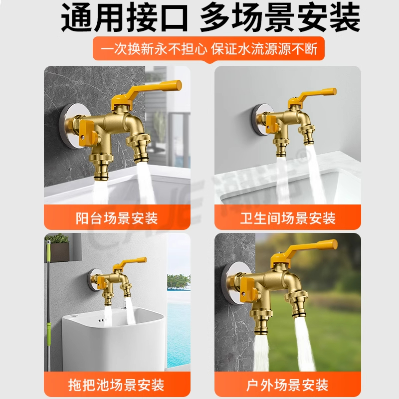 全铜户外水龙头防冻一进二出庭院洗衣机双出室外带锁龙头双控钥匙