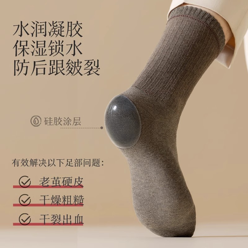 防裂袜子男100%纯棉中筒春秋老人防脚裂脚后跟干裂全足型防臭抗菌