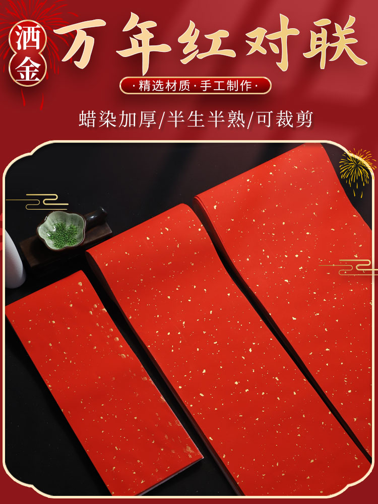 马年万年红春联纸空白手写春联50张无横批对联纸加厚书法对联宣纸 洒金烫金书法用纸 2026春节贴春联用