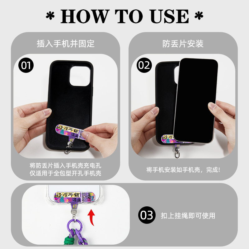 得偿所愿手机夹片挂绳360°可旋转手机挂链垫片超薄手腕款手机绳斜挎可背挂脖便携时尚户外防丢手机链手腕