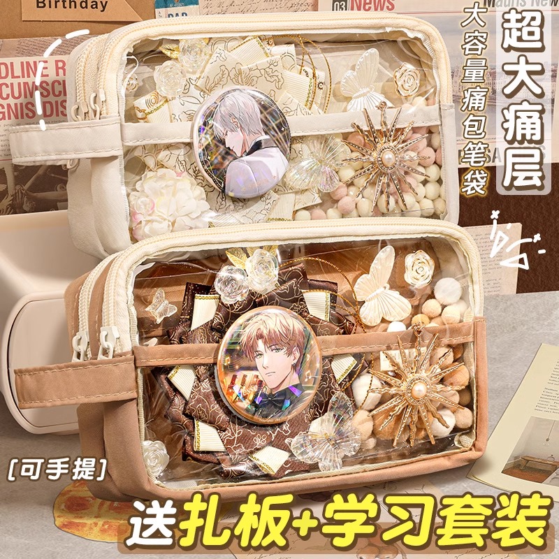 超大痛层!2024新款高颜值小食量痛包笔袋透明小学生痛包diy材料包女孩款男女生可爱二次元大容量学生文具盒1