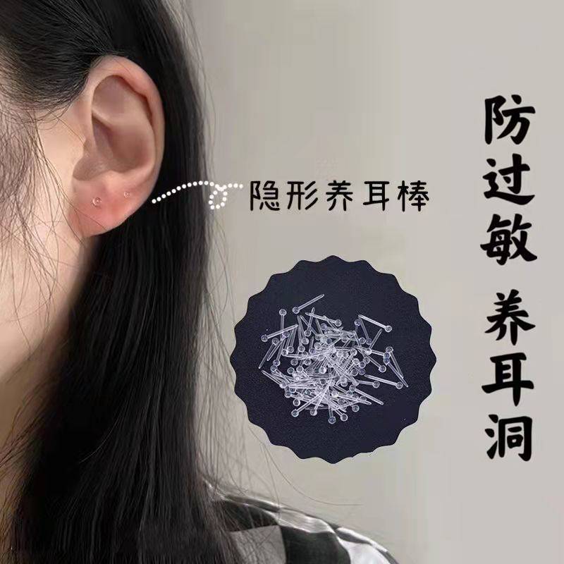 消毒棒耳钉养耳洞塑料耳棒隐形女耳棍透明学生耳针男带防过敏星星