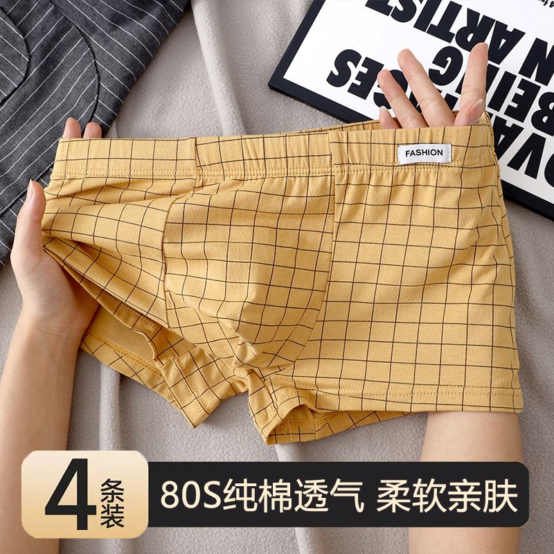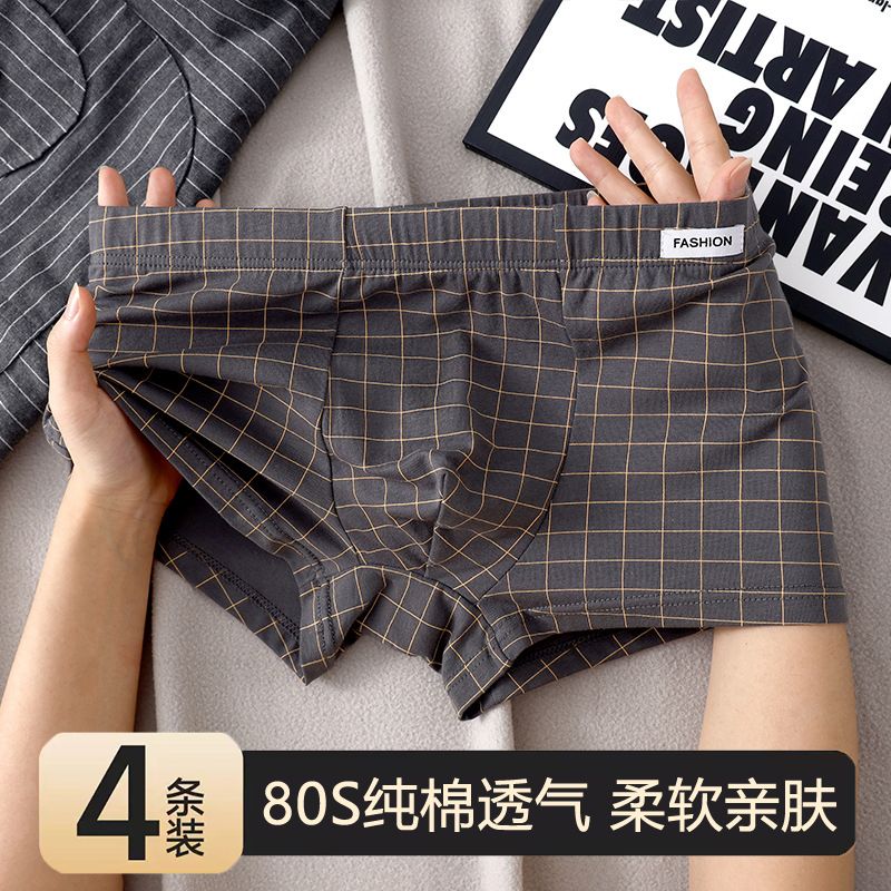 纯棉男士内裤男生抗菌宽松透气平角裤衩运动四角裤潮格子你的棉质