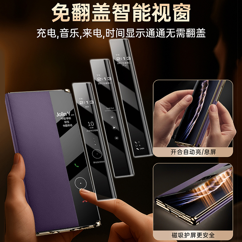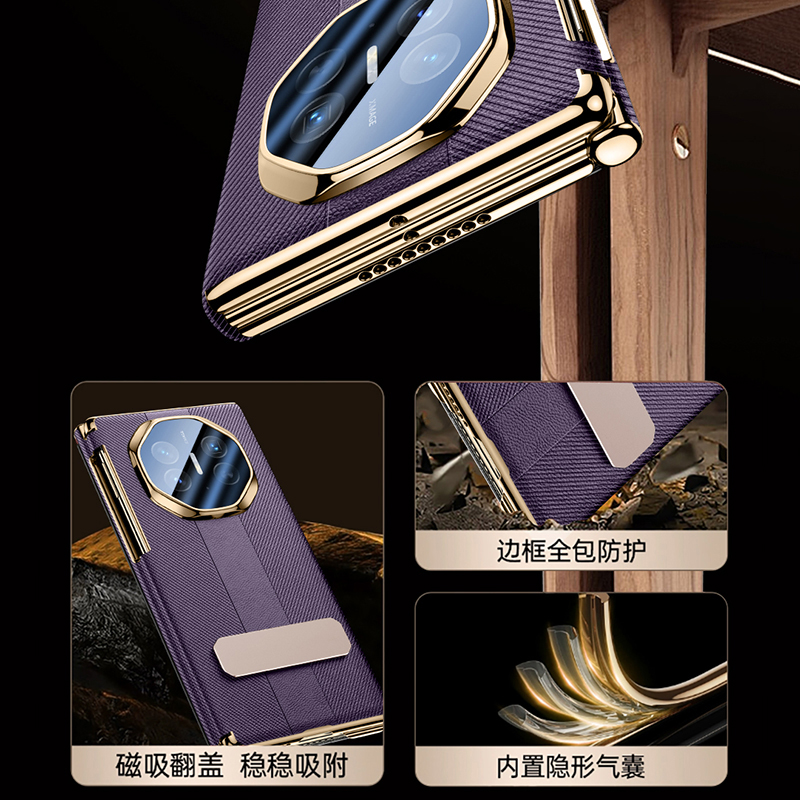 欧福龙适用于华为Mate XTS非凡大师手机壳XT三折叠保护套新款双中轴磁吸全包压纹轻奢皮纹支架款商务防摔壳